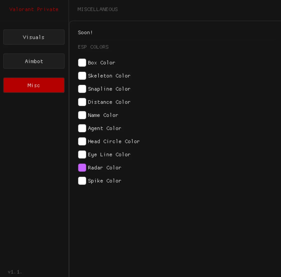 - Full Color Control: Customize every ESP element (Box, Skeleton, Radar, Spike) to fit your visual preference.